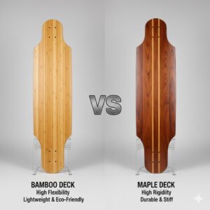 That’s why downhill and carving riders love bamboo: it absorbs vibration from rough pavement while still feeling snappy and responsive.